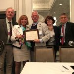 Photo from Schloemicher-Thier J., Chavez E., Sataloff R. , Calcinoni O.,Woo P. receiving CoMeT honorary member diploma,